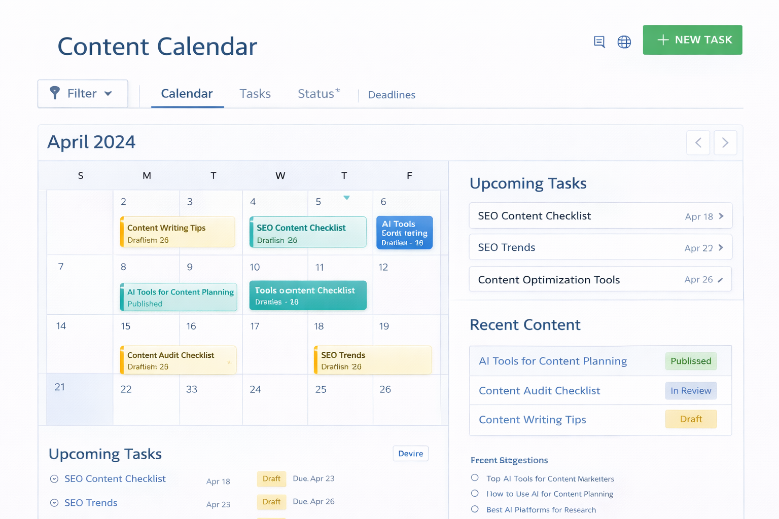 | Maintaining publishing consistency | Content calendars are often managed in spreadsheets with manual updates | Irregular posting reduces audience engagement and SEO growth |