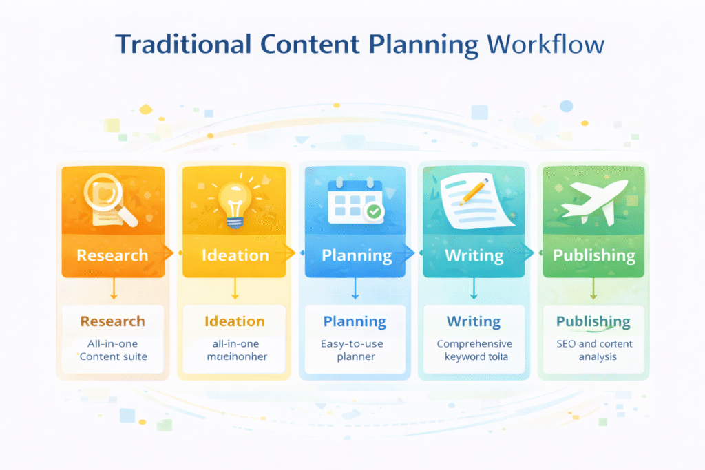 Traditionally, content planning involved manual brainstorming, competitor analysis, and hours of keyword research. Marketers had to rely on spreadsheets, search engine results, and multiple tools just to identify the right topics.