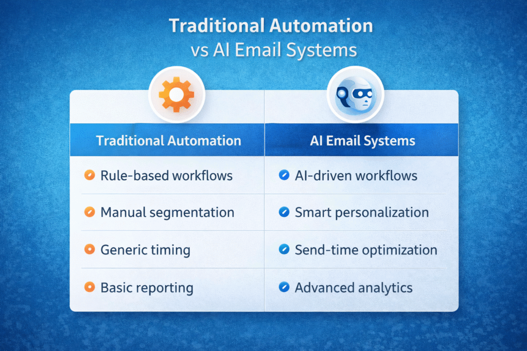 Traditional Automation vs AI Email Systems (Depth Comparison)
