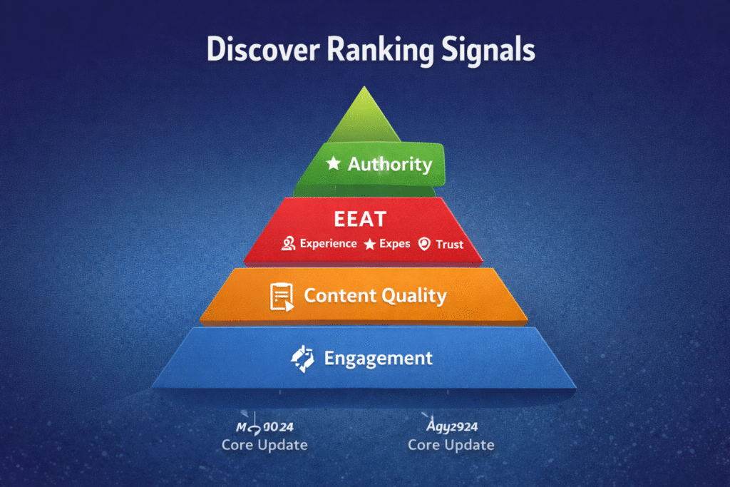 Together, these signals form the foundation of Discover rankings. When Google releases a Core Update, it recalibrates how these signals are evaluated, which explains why Discover traffic can change dramatically even if search rankings remain stable.