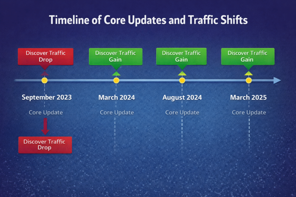 Major Core Updates and Discover Traffic Volatility (2022–2025)