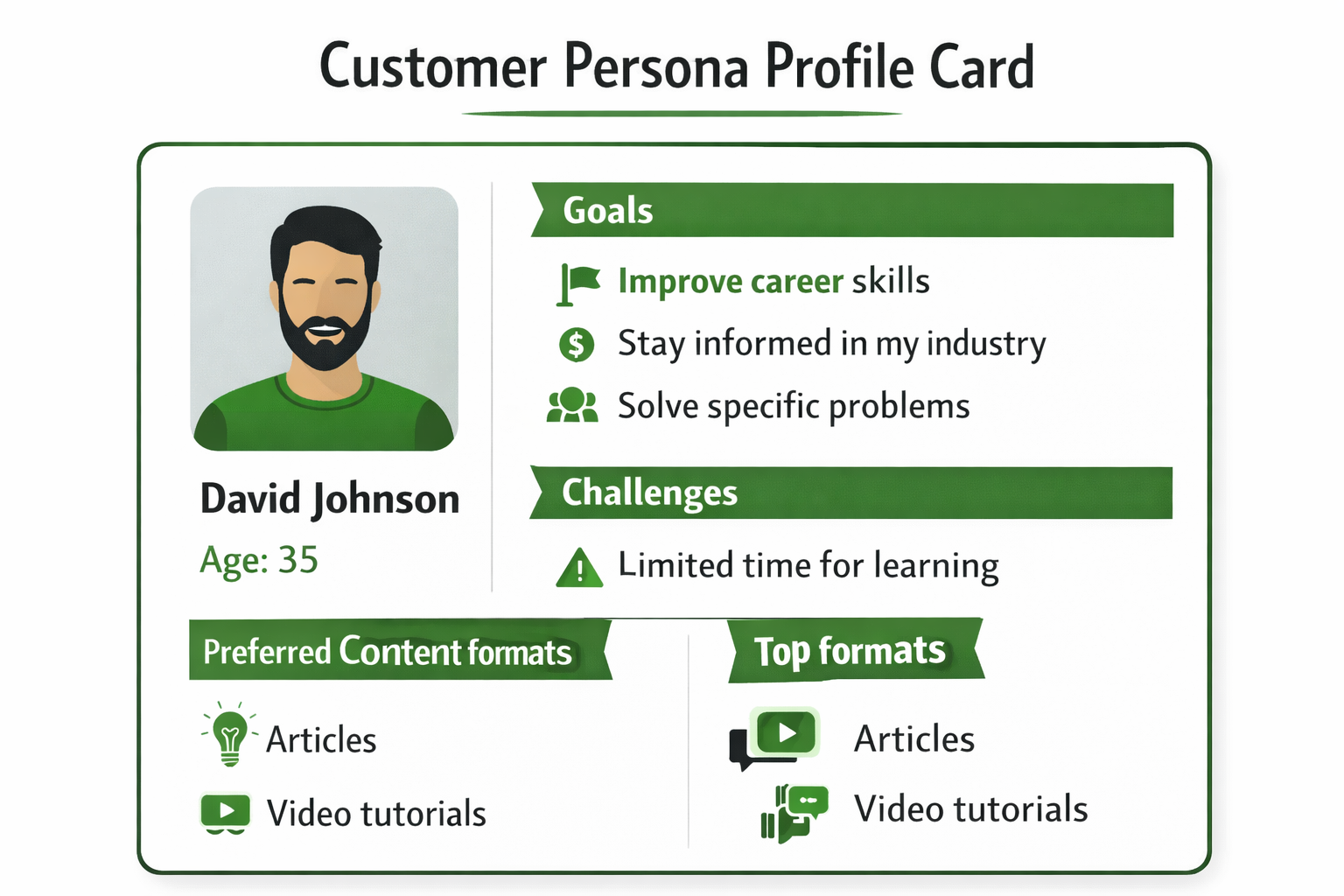A powerful way to understand your audience is by creating audience personas. An audience persona is a semi-fictional profile that represents your ideal customer or reader. It typically includes demographic details (age, location, profession), goals, challenges, interests, and content preferences.