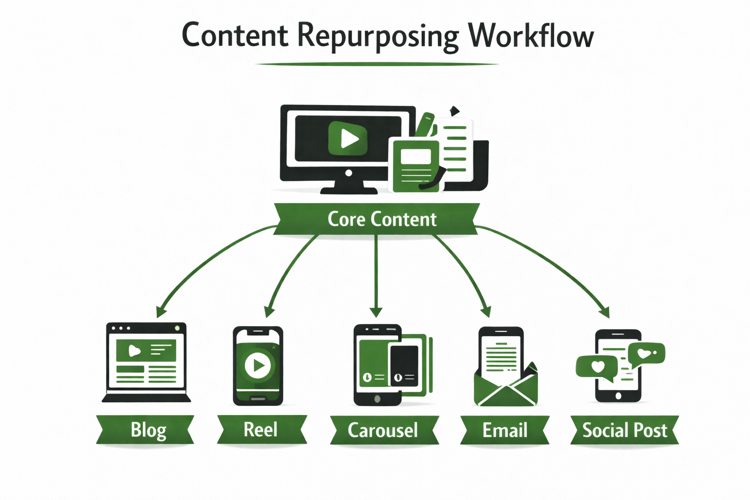 This repurposing workflow maximizes reach and efficiency when mastering how to create a content plan.