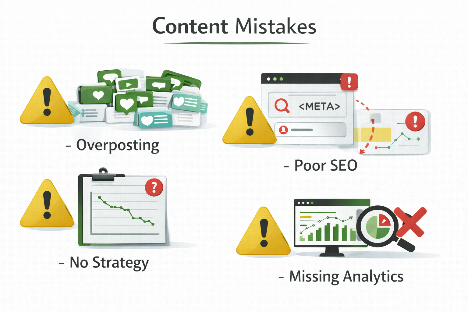Even if you understand how to create a content plan, certain mistakes can still hold your strategy back. Many brands invest time in content but fail to see results because of poor planning, lack of alignment, or inconsistent execution. Avoiding these common errors can significantly improve your content performance and long-term growth.