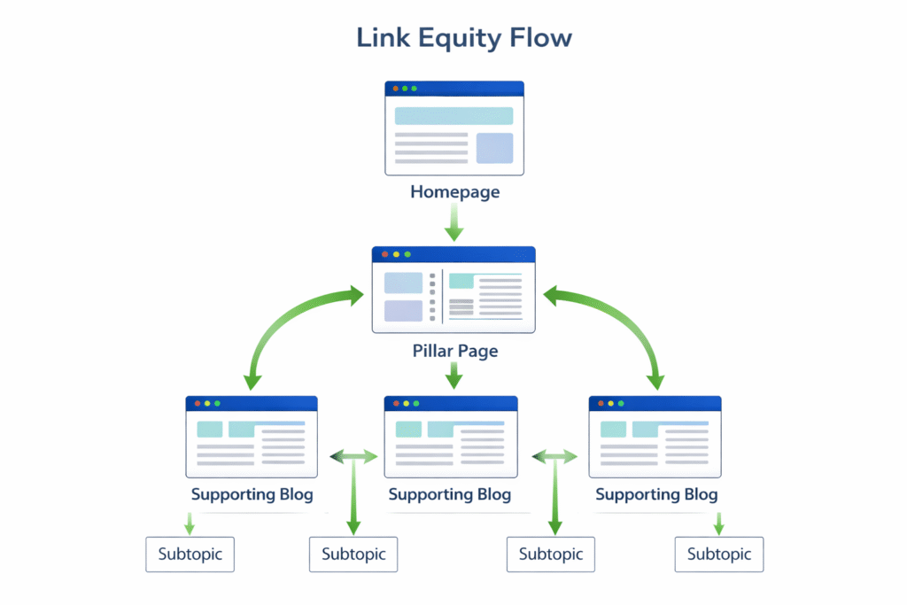 When multiple pages link to a single page using contextually relevant anchor text, Google begins to associate that page with a specific topic. Over time, this strengthens its topical authority.