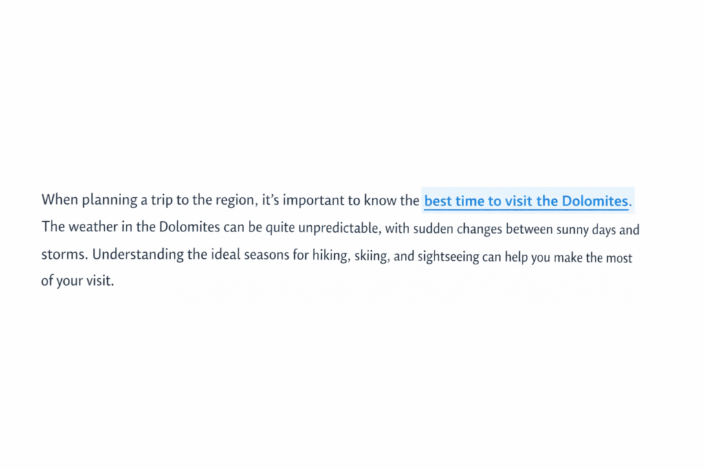 The best anchor text is descriptive, relevant, and natural. Instead of generic phrases like “click here,” use keyword-aligned anchors such as keyword research guide or content marketing strategy that clearly describe the linked page.