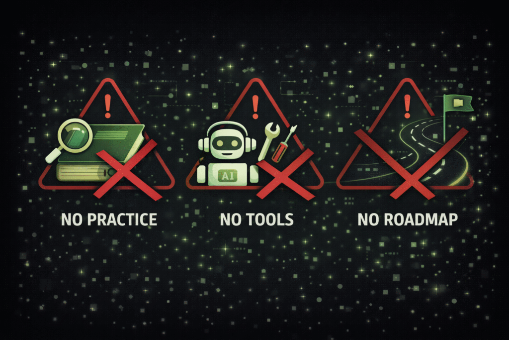 Without a roadmap, learners don’t know what to focus on first or how skills connect. Progress feels slow because effort is scattered. A clear sequence—fundamentals, tools, practice, optimization, projects—keeps learning focused and measurable.