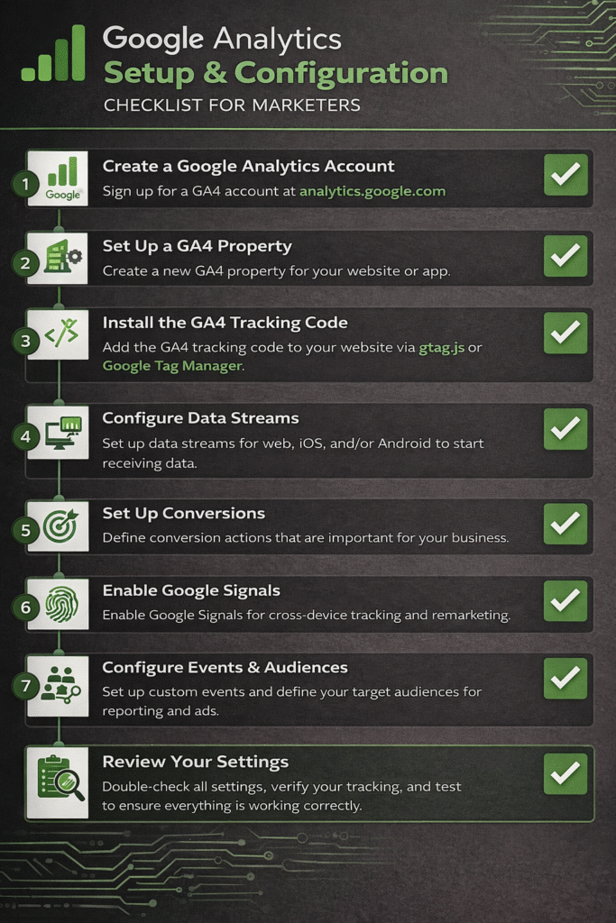 To effectively learn digital marketing with Google Analytics, the foundation must be set up correctly. A proper setup ensures that the data you see is accurate, meaningful, and useful for decision-making. Without this step, even the best strategies can fail due to unreliable insights.